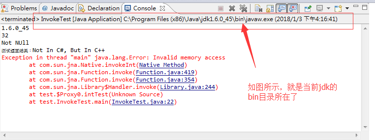 2、怎么确定c#的dll是不是成功复制到jdk的bin目录呢?换言之怎么确定自己的bin目录在哪里呢?可以在eclipse中运行的时候通过控制台看到。