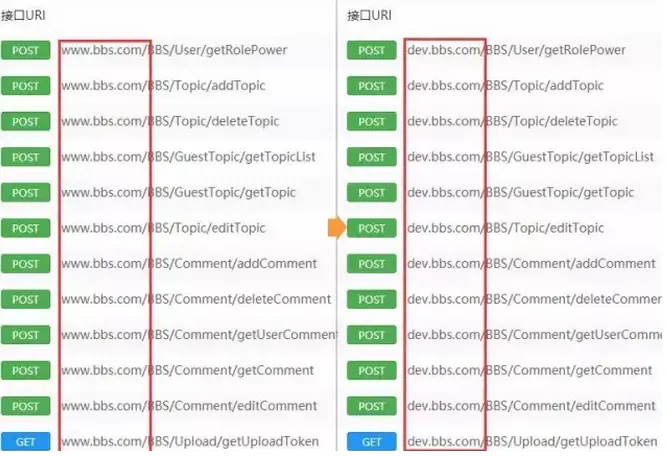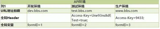 示例的bbs项目拥有近150个接口,现有如下的三个环境,每次开发、测试和上线的时候都需要全局改变接口的地址前缀和头部等,有没有办法可以快速将所有的接口在这三个环境中切换呢?