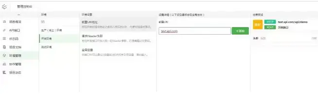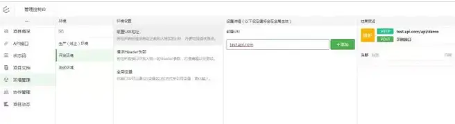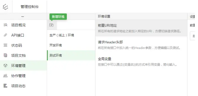 点击左侧环境管理,既可进入到当前项目的环境管理页面,在此可以对环境进行增删查改等操作: