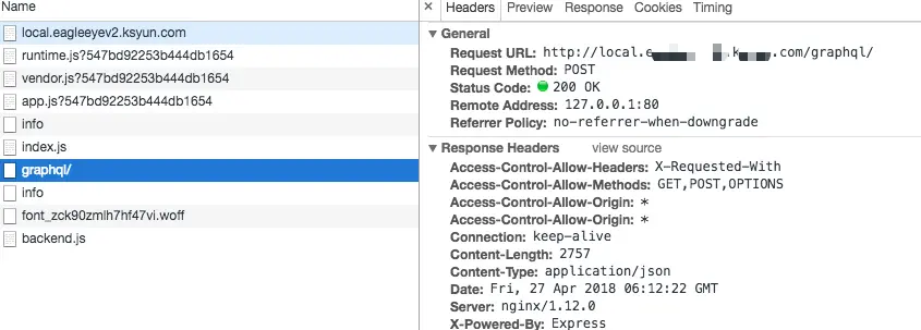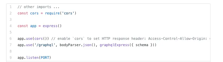 不过问题也很容易解决。由于 express-graphql 和 apollo-server 都是基于express.js的。所以可以用 cors 这个middleware来修复这个问题。