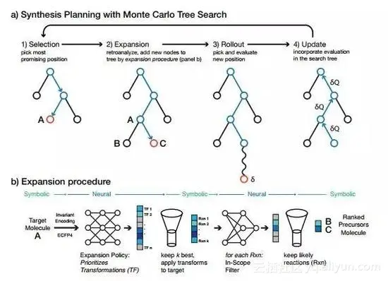 Marwin H. S. Segler及其团队通过深度学习神经网络来学习所有已知的大约1240万个单步有机化学反应,使它能够预测在任何单一步骤中可以使用的化学反应。AI工具重复应用这些神经网络来规划多步骤合成,解构所需的分子,直到最终得到可用的试剂。