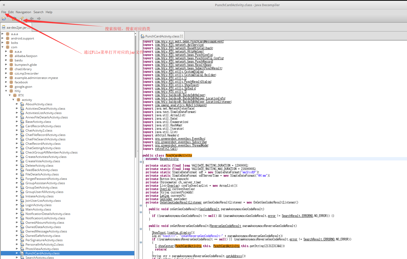 下面是公司内部的一个打卡系统,smali修改的有两个地方