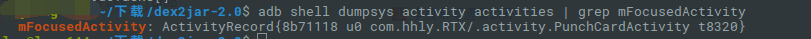 1、 首先用手机打开 考勤打卡的界面,然后使用 android adb 工具查看当前的Activity信息定位到具体的类