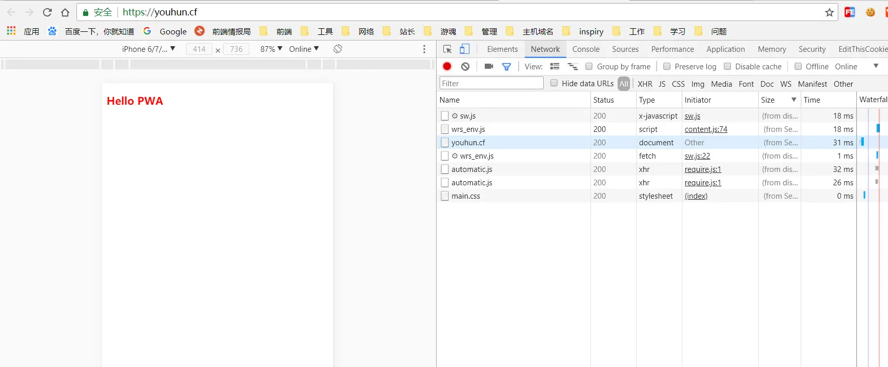 我们可以把当前pwa目录的所有内容都扔进服务器中,或者coding Pages和gitHub Pages也是可以的,当然,记得开启https。在上边介绍过SW的权利比较大,为了安全性,我们使用https协议来访问。