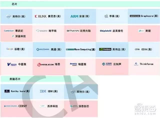 当前,AI芯片主要分为GPU、DSP、FPGA、ASIC以及类脑芯片等,尤其是于端深度学习计算平台的需求正在快速释放。其中,来自我国的亮点企业有寒武纪、深鉴科技等。