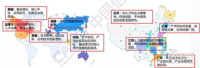 目前,美国仍是人工智能核心发源地之一,坐拥卓越的技术研发机构、理论学科以及各类实验室,加上资本、政策利好,AI产业发展前景乐观,在基础算法和理论研究方面,相对领先,其它国家人工智能发展正在快速跟进。