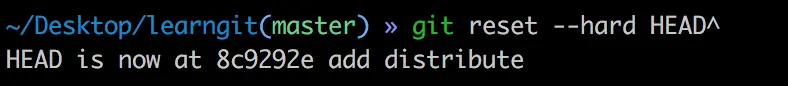 当前所处的位置为HEAD,如果我们希望回退到上一步(即add distribute),可以用HEAD^来表示。上两步是HEAD^^,以此类推。