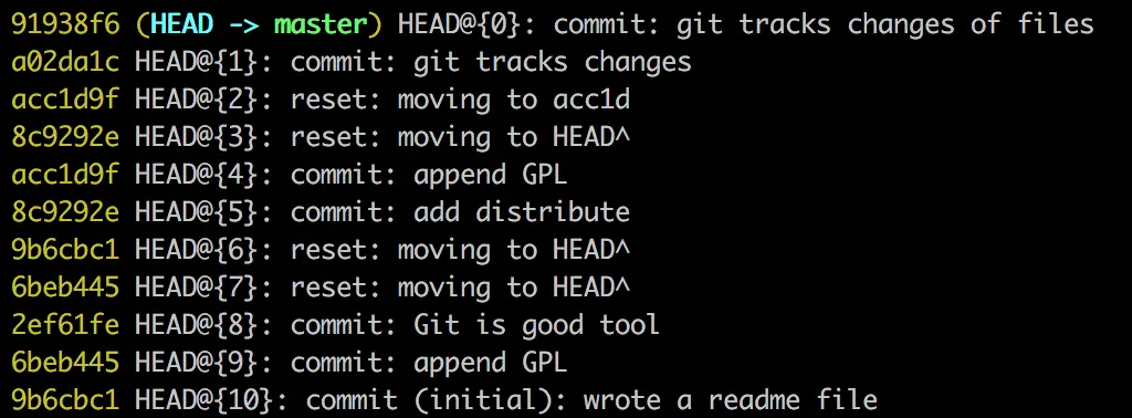 如果你忘记了之前的commit id也不要紧,可以用过git reflog来查找。