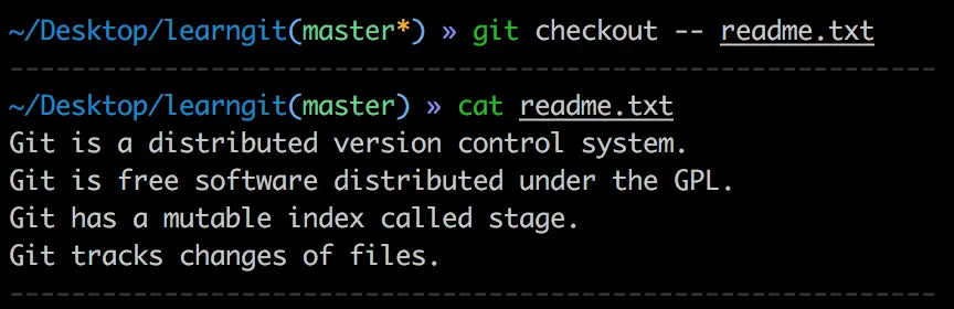 如果是第二种情况,可以简单地用git checkout命令回退。