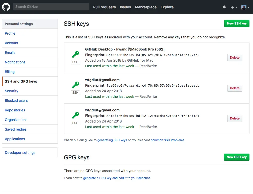 将公钥内容原封不动的添加到Github上(Settings -> SSH and GPG keys -> New SSH key)