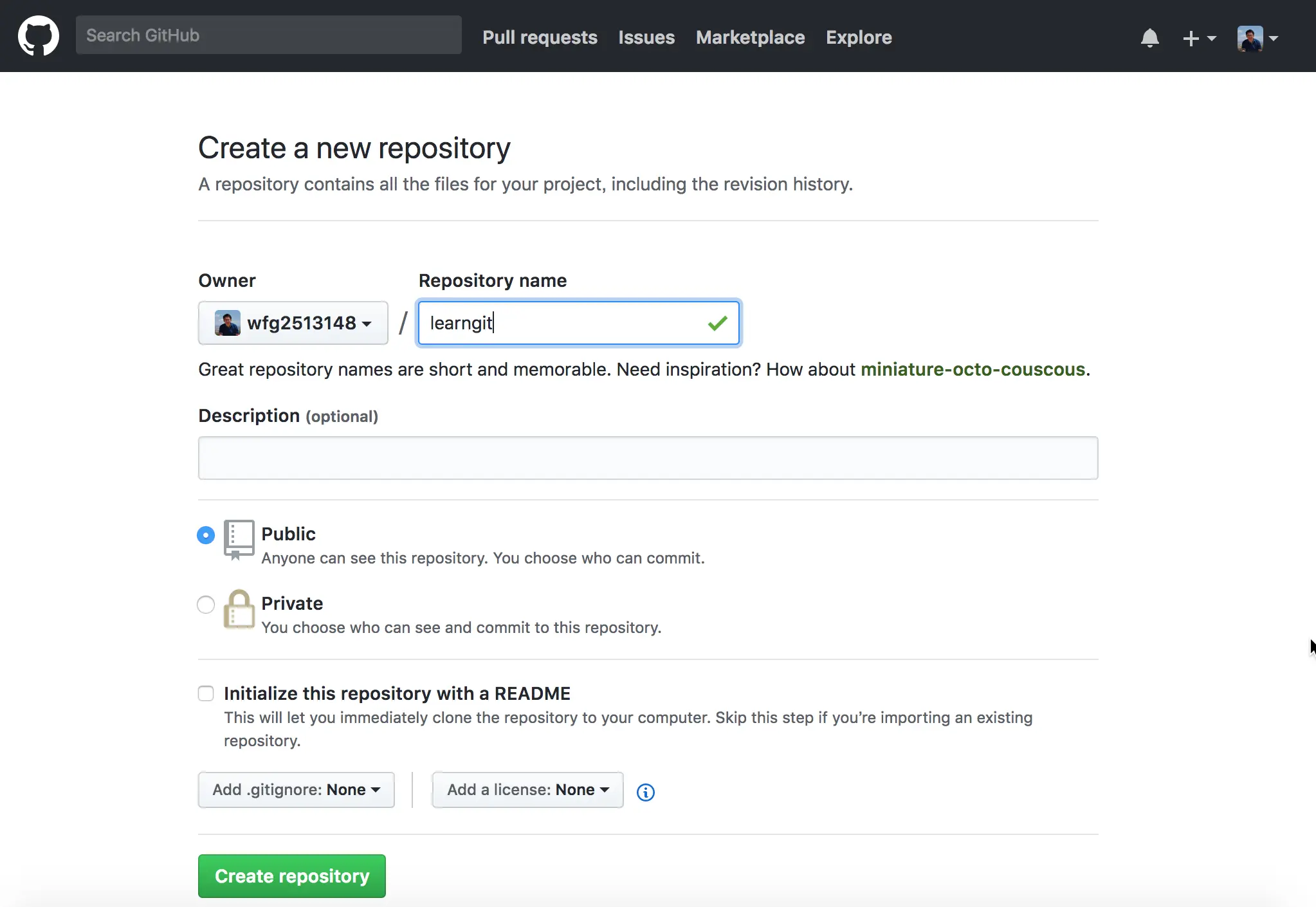 git remote add origin https://github.com/wfg2513148/learngit.git
