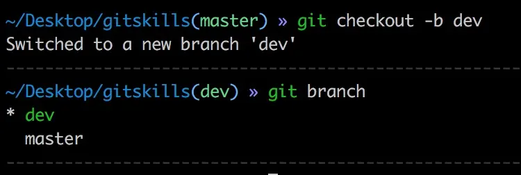 -b参数表示创建完立刻切换,相当于执行了以下两条命令: