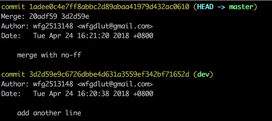留痕模式 - git merge --no-ff -m "no-ff merge" [branch name merged]