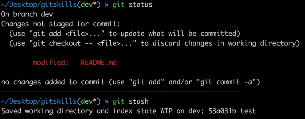 可以看到当前工作情况已经被储存起来了,这时候可以放心地切换分支了。