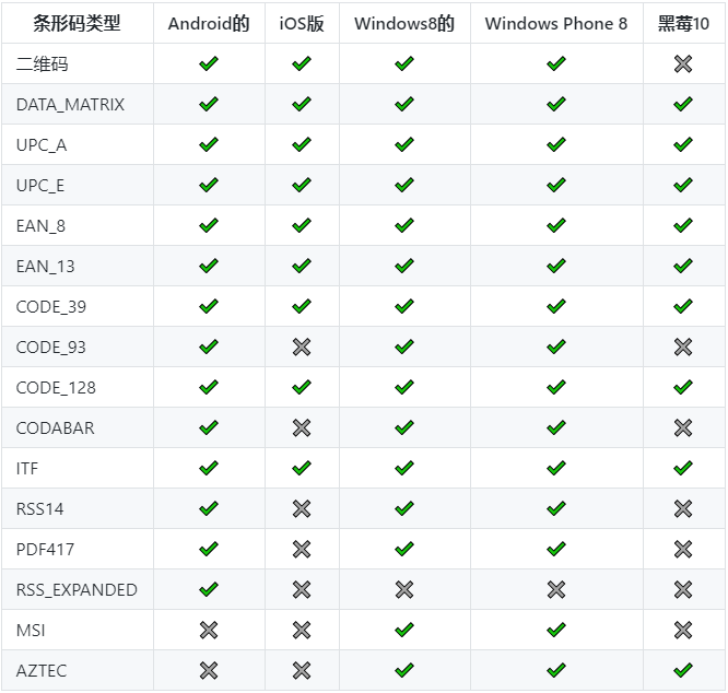 支持的条码类型