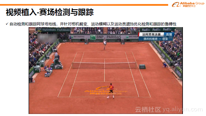 下图是网球赛中将阿里巴巴的品牌logo无缝投影到赛场中。