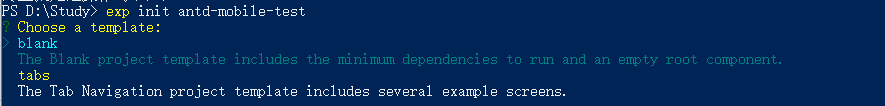 2、exp init my-new-project #初始化项目,会要求你选择模板