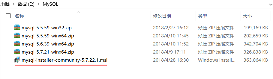 双击mysql-installer-community-5.7.22.1.msi开始安装