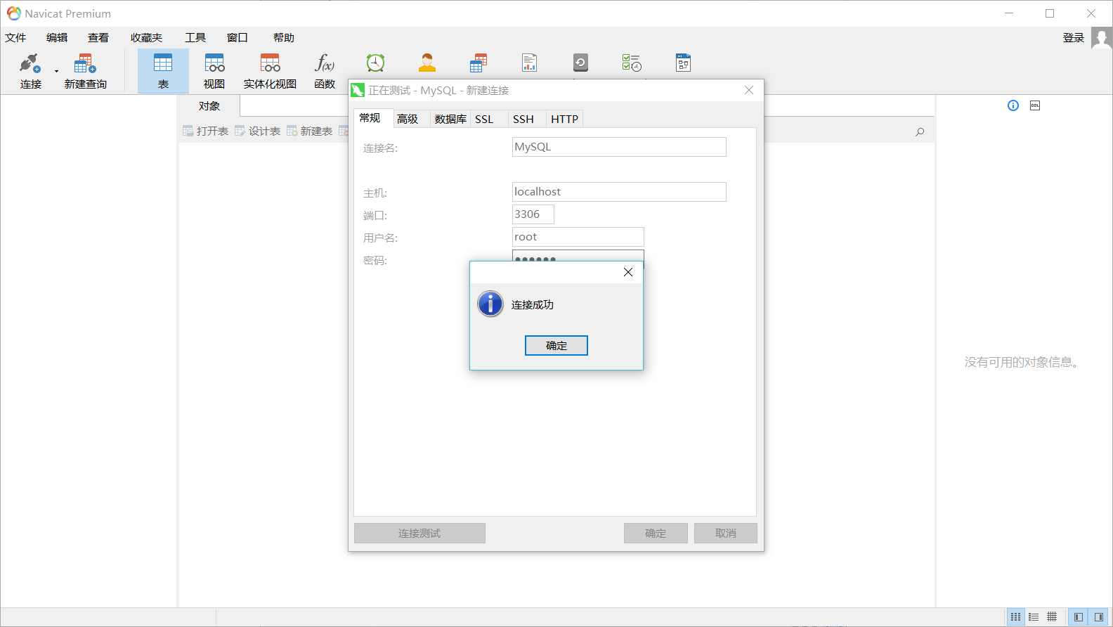 安装成功。使用Navicat Premium12测试连接