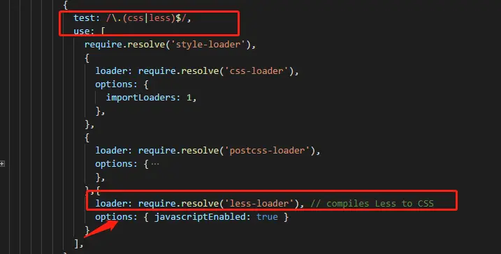 2.分别在webpack.config.dev和webpack.config.prod 查找test: /\.css$/替换成test: /\.(css|less)$/,