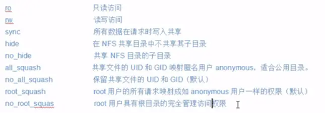 - 搭建NFS服务器步骤如下: 2.1. 安装NFS服务器:yum install nfs* protmap -y ,参数protmap指的是RPC协议 2.2. 安装成功后重启服务:/etc/init.d/nfs restart 2.3. 修改/etc/exports配置来设置共享目录,配置如下: