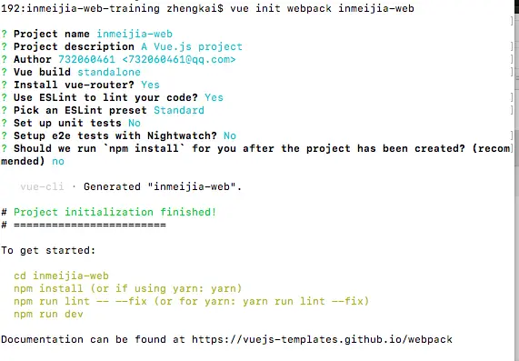 创建一个基于webpack模板的新项目