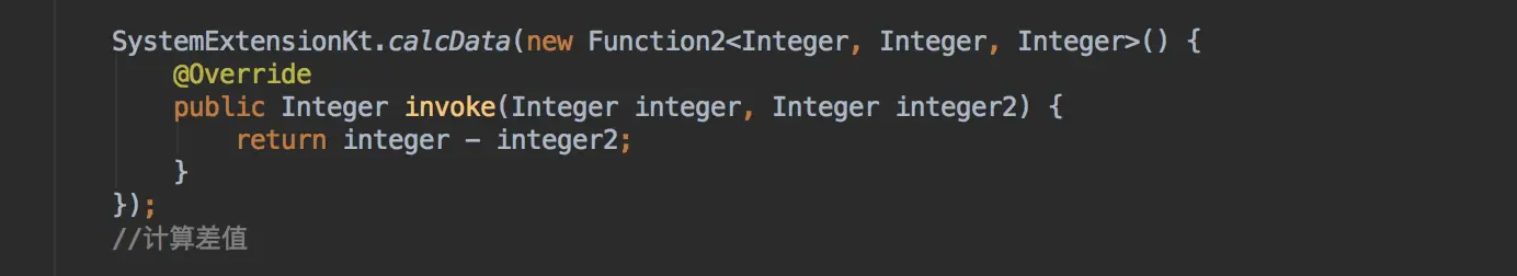 Kotlin 支持函数对象,可以将 lambda 作为函数的参数和返回值,这也是 Java 中没有的特性,于是在 Java 中调用这类方法,就会变成匿名内部类(类名就叫 FunctionX, X是数字,表示参数数量):