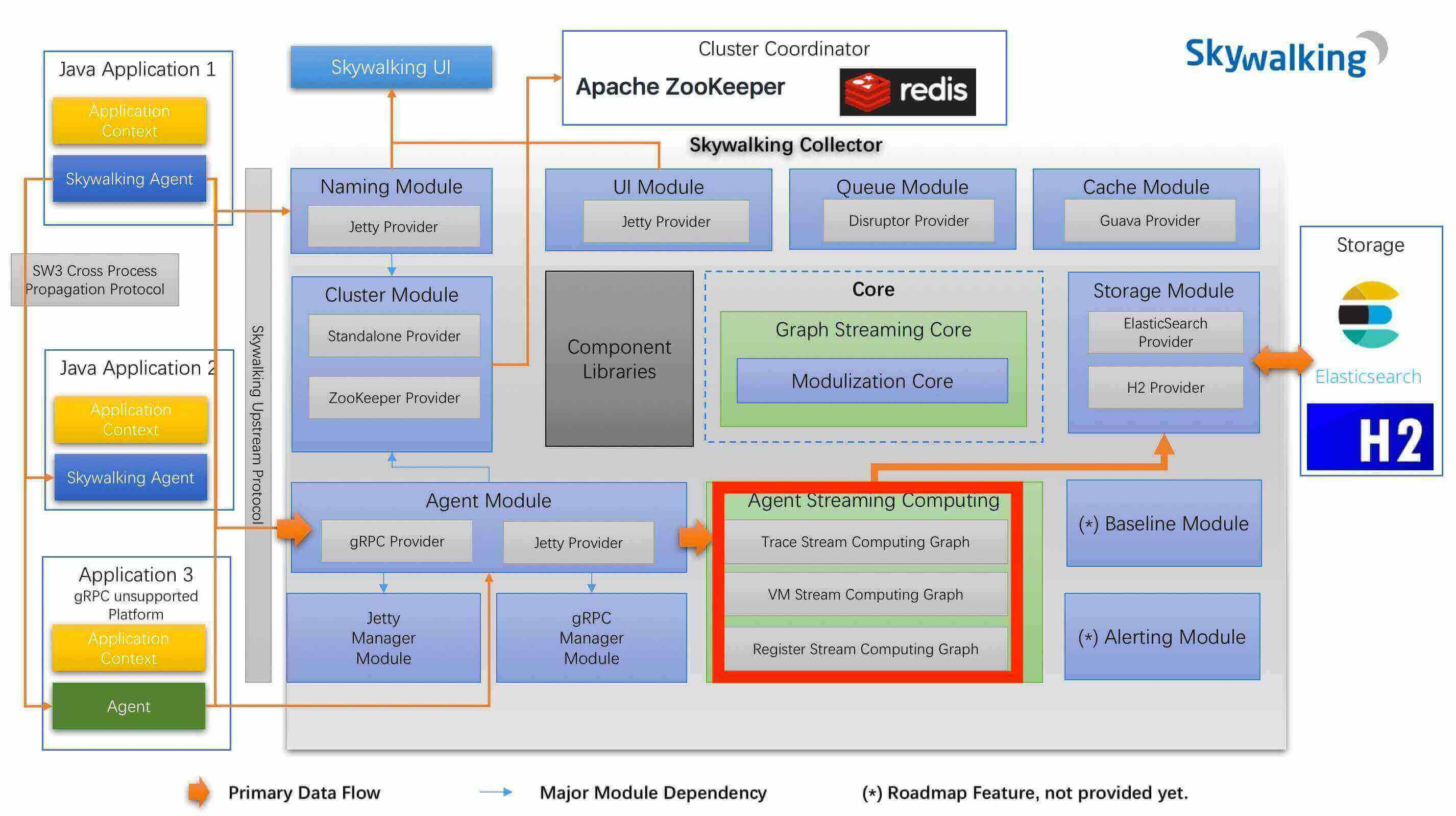 Collector Streaming 在 SkyWalking 架构图处于如下位置( 红框 ) :