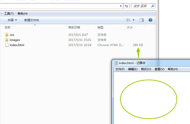 重新打开电脑之后,Index.html的文件大小是280KB,打开之后却是空白,所以来求助于群里的程序员大牛。