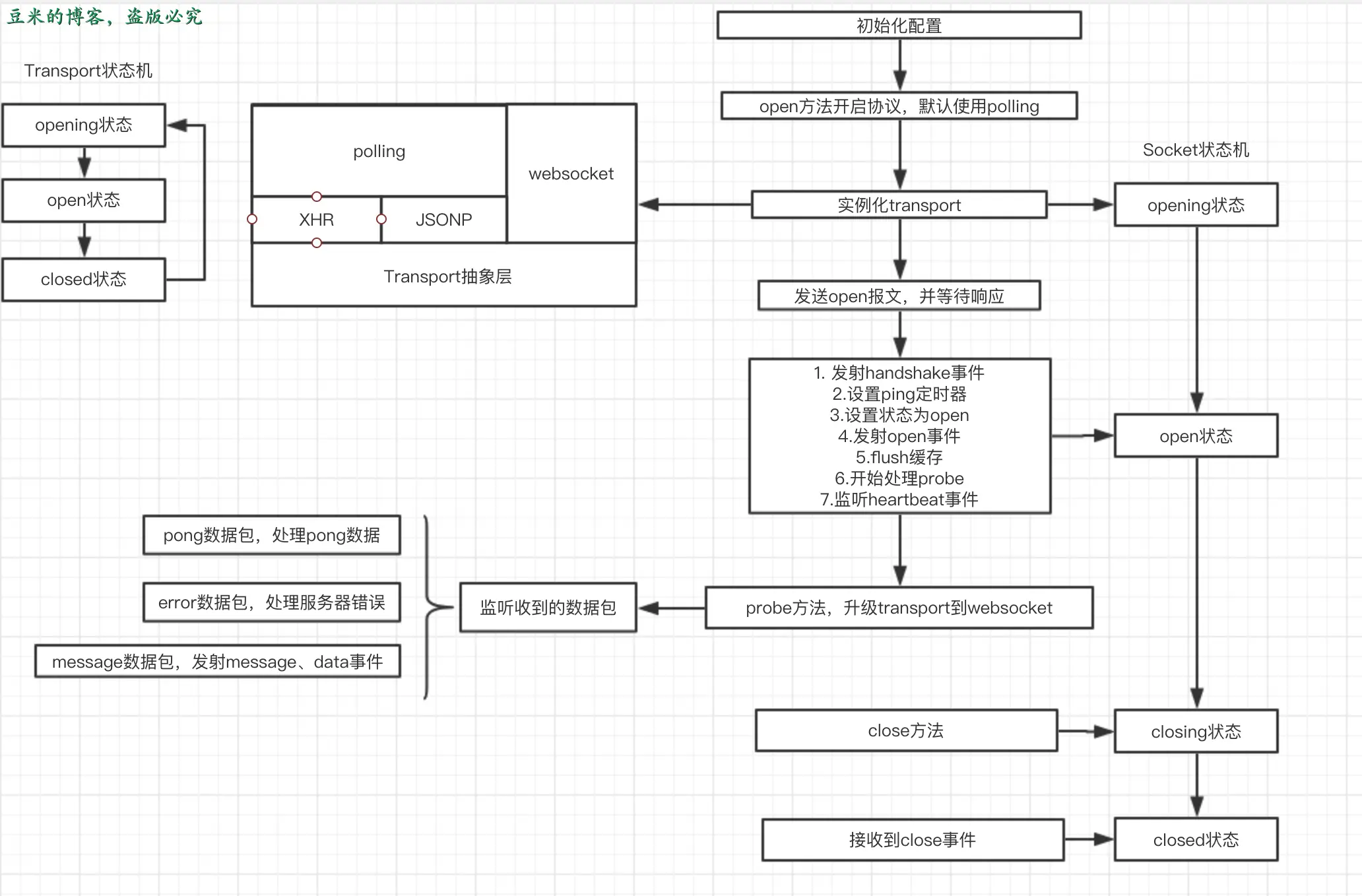 客户端的engine.io的主要实现流程我们在上面文字介绍了,结合代码engine.io,画了这么一个客户端流程图: