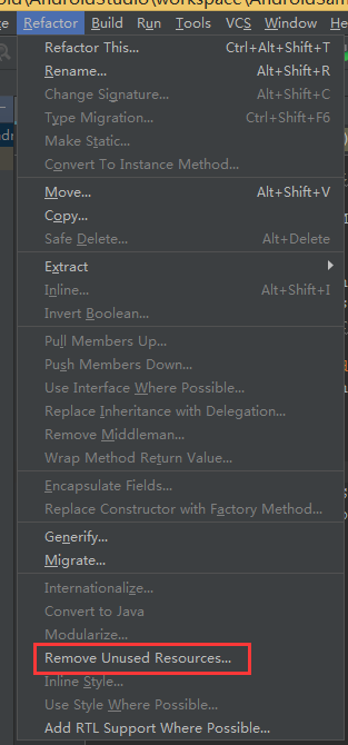 这里使用 Android Studio 自带的工具来清理无用资源: