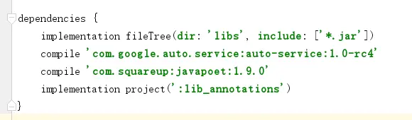 - 创建lib_compiler, 这同样是一个纯java的module。该module依赖于步骤2创建的module_annotation,处理注解的代码都在这里,该moduule最终不会被打包进apk,所以你可以在这里导入任何你想要的任意大小依赖库。
