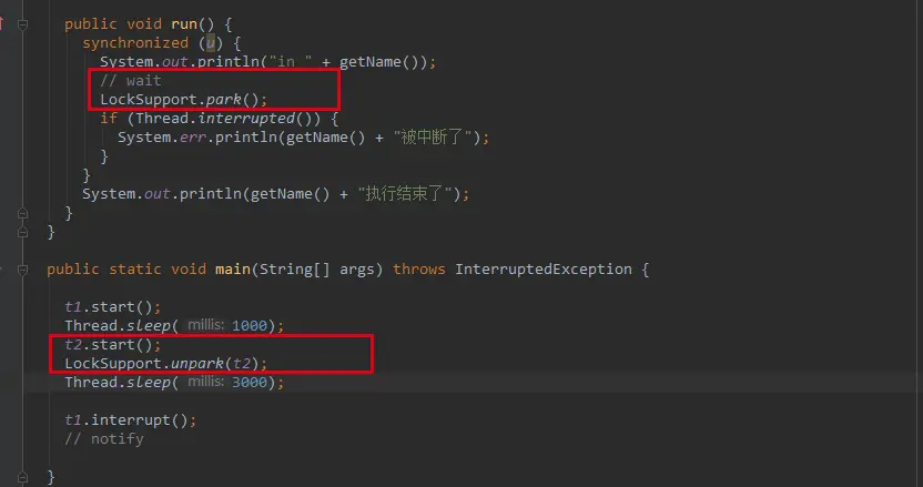 LockSupport.unpark(t2);
