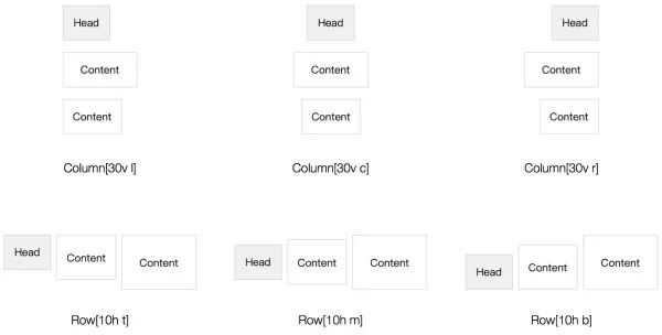 将调整好间距的单元格进行左对齐,在添加间距参数的组名称后面添加对齐参数即可完成组内对象的自动对齐。对齐参数命名规则见下表,其中 l,c,r,t,m,b 分别是 left、center、right、top、middle、bottom 的首字母。