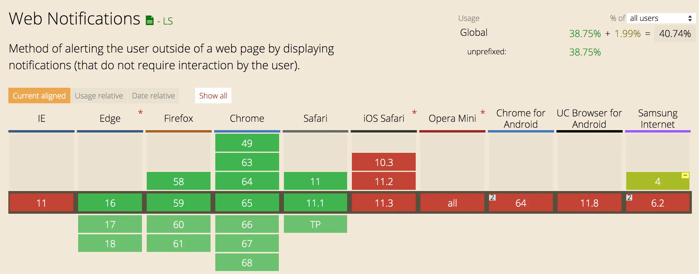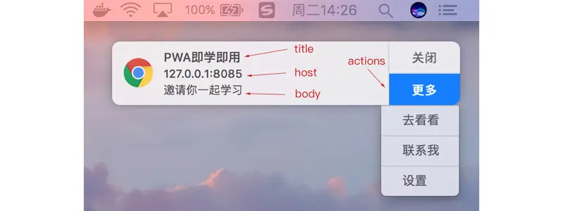 目前移动端浏览器普遍还不支持该特性。但是在Mac OS上的safari里面是支持该特性的,不过其调用方式与上文代码有些不太一样。在safari中使用Web Notification不是调用registration.showNotification()方法,而是需要创建一个Notification对象。