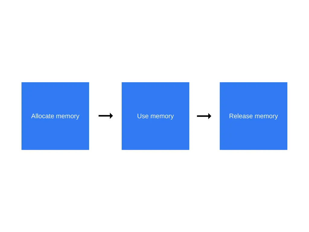 - 使用内存-这是程序实际使用之前分配的内存的阶段。当你在代码中使用已分配的变量的时候,就会发生内存读写的操作。