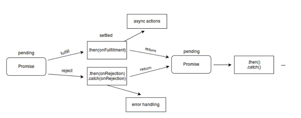 pending 状态的 Promise 对象可能触发fulfilled 状态并传递一个值给相应的状态处理方法,也可能触发失败状态(rejected)并传递失败信息。当其中任一种情况出现时,Promise 对象的 then 方法绑定的处理方法(handlers )就会被调用(then方法包含两个参数:onfulfilled 和 onrejected,它们都是 Function 类型。当Promise状态为fulfilled时,调用 then 的 onfulfilled 方法,当Promise状态为rejected时,调用 then 的 onrejected 方法, 所以在异步操作的完成和绑定处理方法之间不存在竞争)。