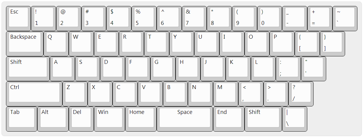 注: 为了笔记本的键盘的按键也类似, 所以左边部分修饰键通过keymap软件修改而得