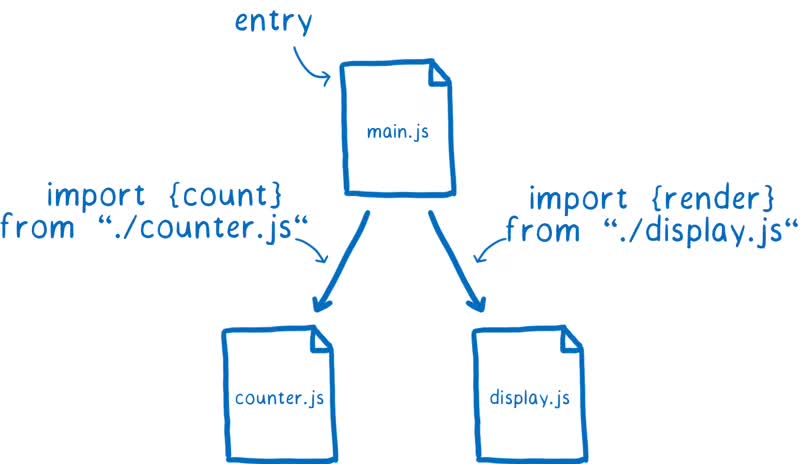 我们要做的是为依赖关系图指定一个入口文件。从这个入口文件开始,浏览器或者 Node 就会顺着导入语句找出所依赖的其他代码文件。