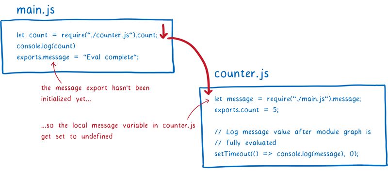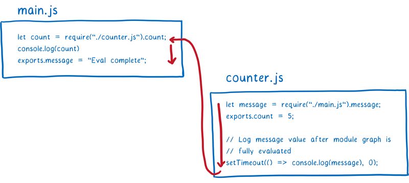 支持循环依赖是 ESM 设计之初就考虑到的一大原因。也正是这种分段设计使其成为可能。