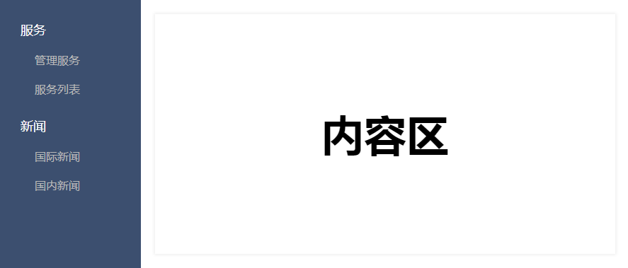这是一个简单的后台管理页面,左侧面板有一系列的菜单项,右侧内容区基于左侧菜单切换而变化。左侧菜单结构一致,只不过是数据不同而已。在这个例子也可以看出: