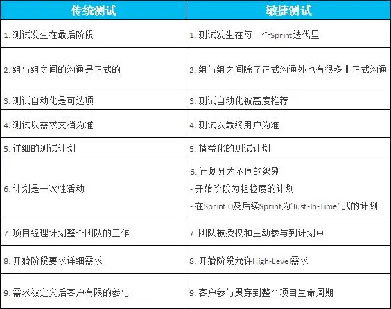 那么敏捷测试和我们熟悉的传统测试比,他们到底有什么样的区别呢?我整理了如下对比表: