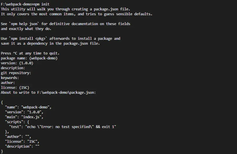 创建你的项目目录, 在当前目录下执行 npm init, 初始化项目目录环境,生成 package.json