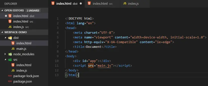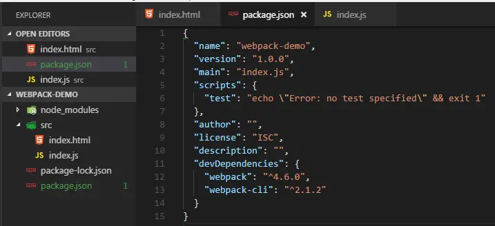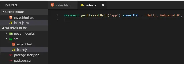 首先在项目目录下创建 src 目录,然后创建 index.js, webpack4 构建的默认入口文件 src/index.js