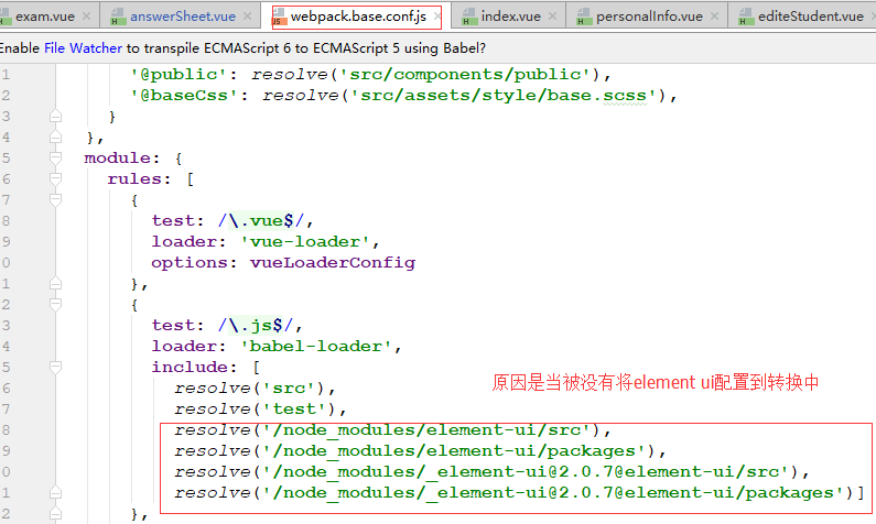 // 如果也是用了官方脚手架vue-cli,还需要在webpack.config.js配置文件中做各修改,用