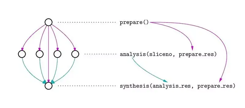 迭代器在 analysis() 函数内部运行,该函数为每个数据集片段 fork 一次。analysis() 函数的返回值将作为 synthesis() 函数的输入。我们可以显式地合并结果,不过 analysis_res 带有一个相当神奇的方法 merge_auto(),它根据数据类型将所有片段的结果合并为一个。