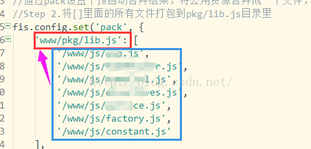 图中已经有说明,就相当与json格式的键值对而已,如果有多个要压缩打包的文件到不同的目录文件中的话,可以用","号隔开。另外还有其它的配置的话可以百度搜下就知道,其实我也不是很懂,最后是通过命令fis relsese -mo 压缩并添加 md5戳,如果不需要添加md5戳的话就把m去掉。压缩后的项目是新的,原来的项目还在,所以要找到自己压缩后的项目目录。