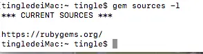 2.接下来,查看Ruby源,要是没有装过的话应该是 https://rubygems.org/,我们需要替换为国内的镜像资源.