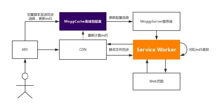 这时Service Worker就有了两个md5,一个是旧版本的md5,一个是当前最新的版本。通过对比这两个md5,我们就知道哪些资源已经过期了。当发现了过期的资源,Service Worker就会重新到服务器上拉取最新资源。整个过程是自动的,无需人工干预。这就解决了不可靠的问题。