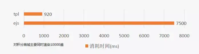 用传统的ejs渲染需要7500毫秒,而用tpl渲染只需要920毫秒。这就是我们做的模版引擎的优化。